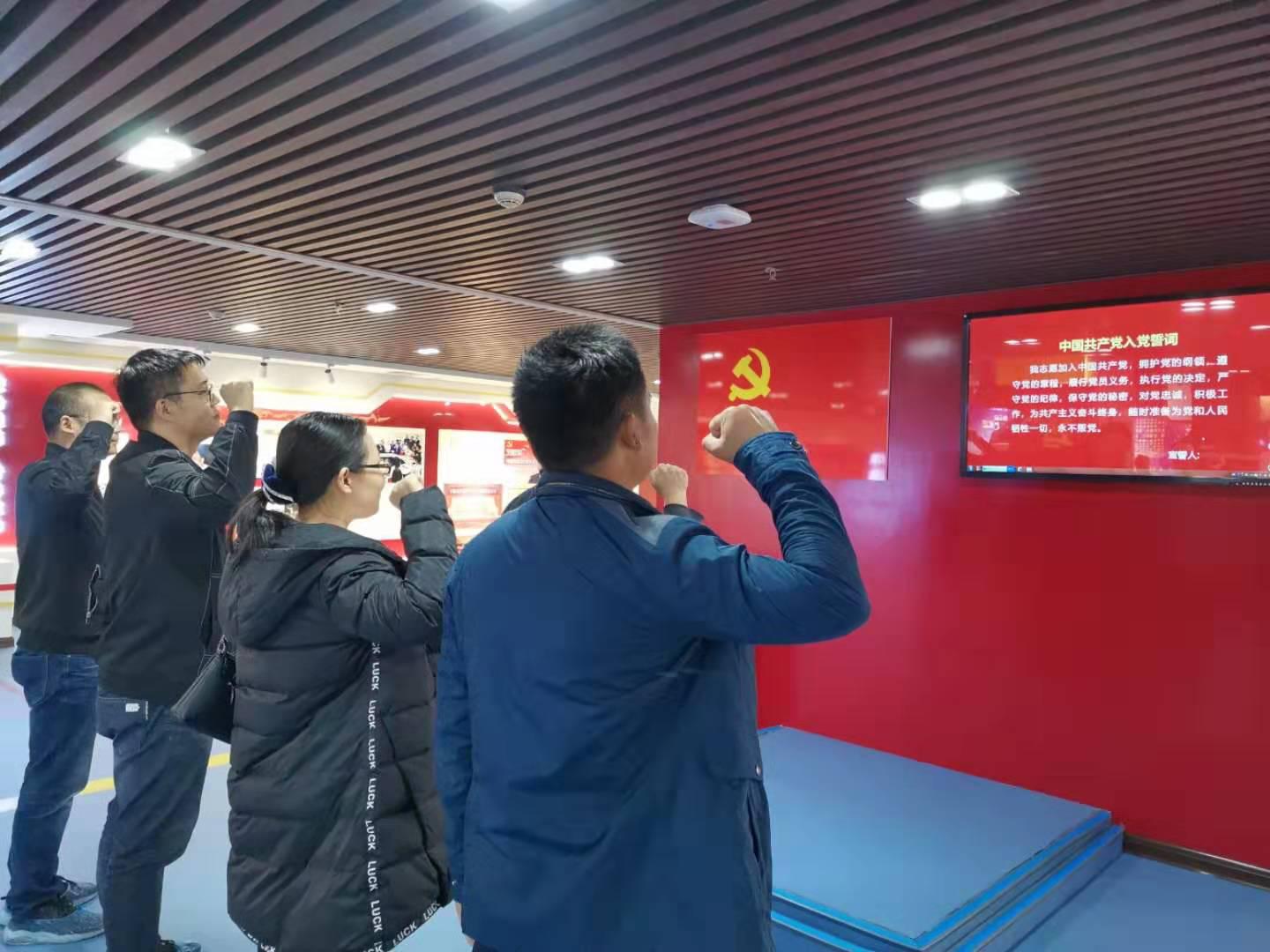 参观前,全体党员重温入党誓词,回顾入党宣誓时的庄严承诺和坚定决心,唤醒先进意识,增强党性意识。