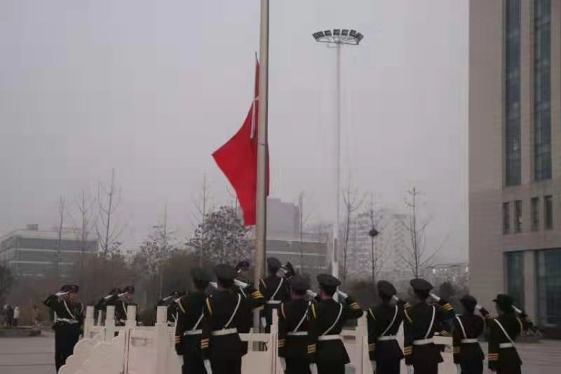 2020年12月7日智能工程学院在致远广场举行升旗仪式。7点整,国旗护卫队的旗手们着装整齐,迈着矫健的步伐,护送着鲜艳的五星红旗入场进行升旗仪式。伴着《义勇军进行曲》的响起,我院全体师生唱国歌、行注目礼,庄严肃穆。