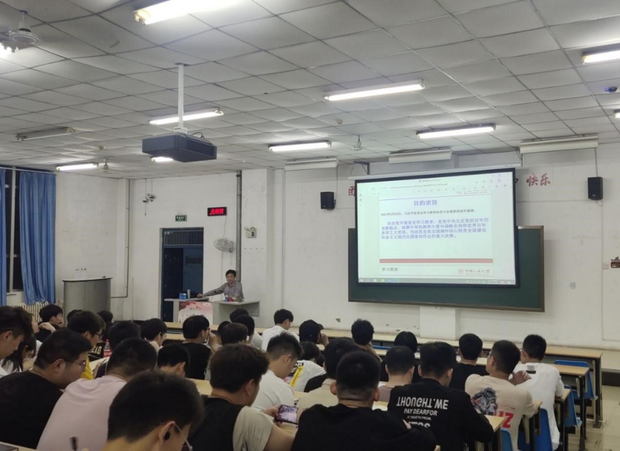 为贯彻落实习近平总书记在党史学习教育动员大会上的重要讲话精神,使党史学习教育走深走实,智能工程学院党支部副书记司尧华于2021年4月25日在教一A104开展了题为《学党史明初心,奋发有为做贡献》的党史学习教育专题形势与政策课,19级全体学生参加了学习。