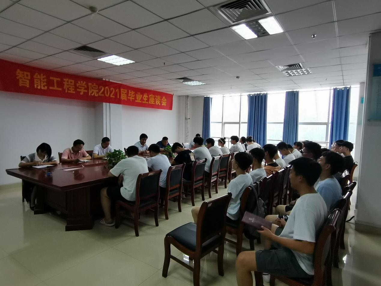 6月9日下午,智能工程学院2021届毕业生座谈会在创新楼209召开。党总支副书记司尧华、副院长聂广华、孟昕元、教研室主任王元利、杨富超,毕业生辅导员康利娜以及毕业生代表参加了座谈会。