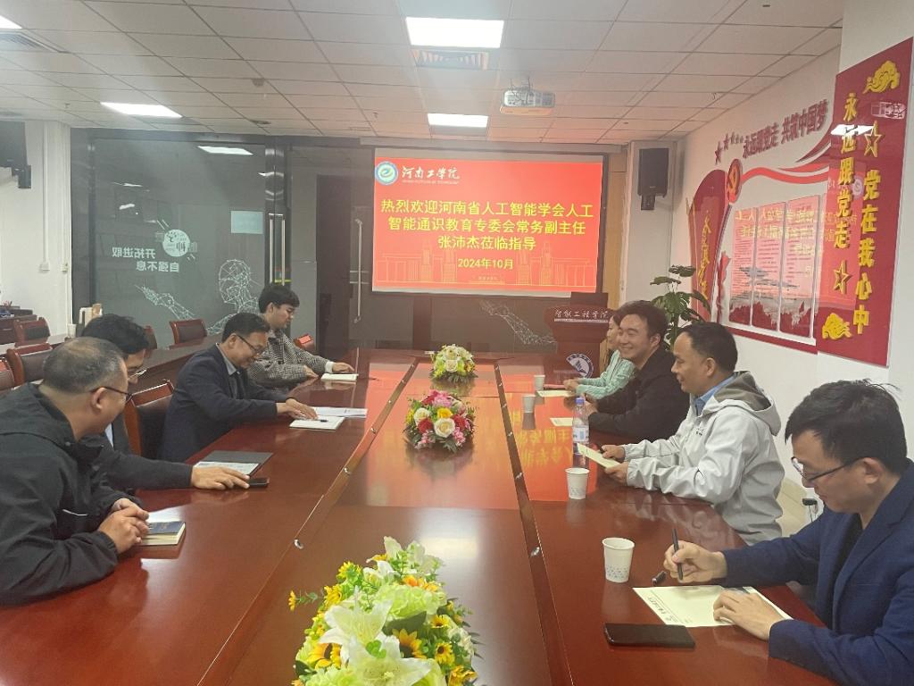 2024年10月31日,河南省人工智能学会人工智能通识教育专委会常务副主任张沛杰、专委会课程建设专家韩从付等一行5人莅临河南工学院智能工程学院,就人工智能通识教育的深化与创新进行了一场富有成效的指导交流活动,为我院人工智能通识教育工作带来了新的思路和方向。