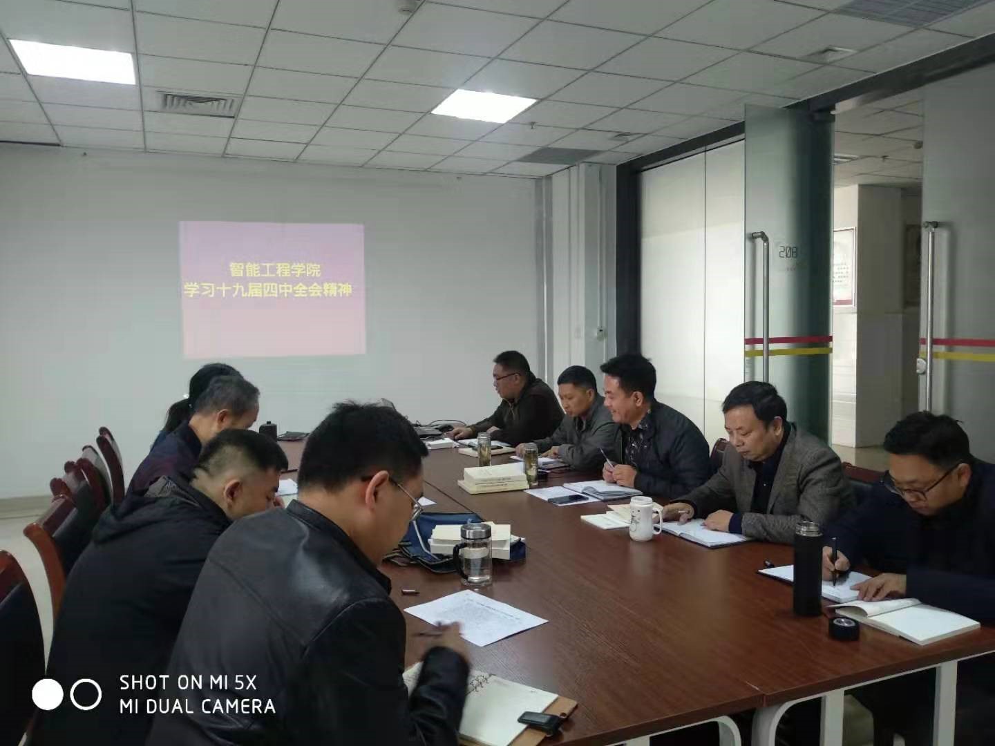 11月11日,智能工程学院党总支理论学习中心组召开学习十九届四中全会精神专题会议,党总支副书记司尧华主持并领学了《中国共产党第十九届中央委员会第四次全体会议公报》。