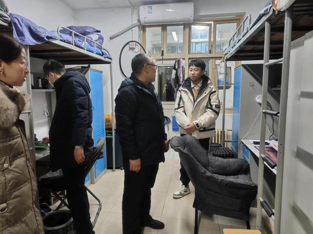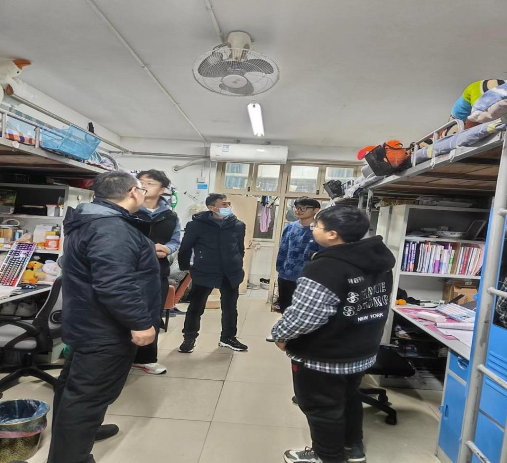 会后,学院党政领导带领各年级辅导员深入学生宿舍进行安全隐患排查整治,并对暂未离校学生进行了安全教育。