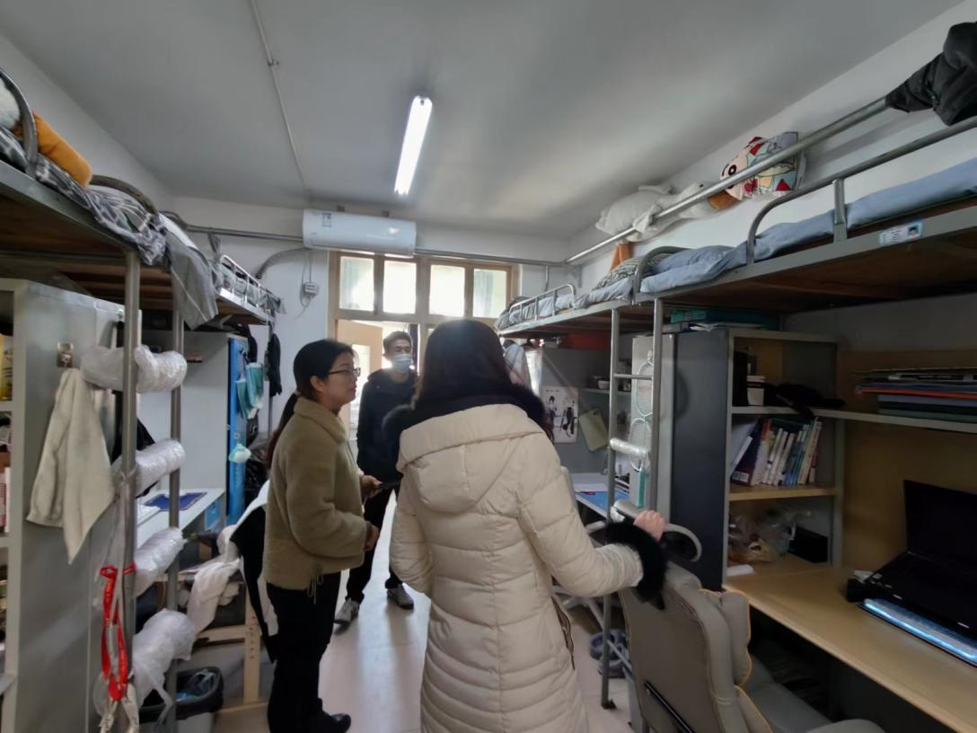 走访期间,班子成员针对学生近期学习情况、冬季预防流感、特色宿舍创建和宿舍安全隐患情况进行交流和提醒。院党委书记郑峰指出,宿舍是学生学习、生活的重要场所,要营造良好的舍风,让宿舍成为学生的温暖“小家”;学院老师要经常深入学生宿舍,及时发现宿舍中存在的问题,持续做好教育引导工作;学院要建章立制,定期开展学生走访帮扶工作,帮助同学们养成良好的学习生活习惯,消灭安全隐患于萌芽之中;团学干部要加强沟通,多向兄弟院系学习优秀的管理经验,把别人遇到的问题当作自己的问题来抓,以高质量的宿舍舍风建设,为学校高质量建设平安校园、文明校园贡献力量。
