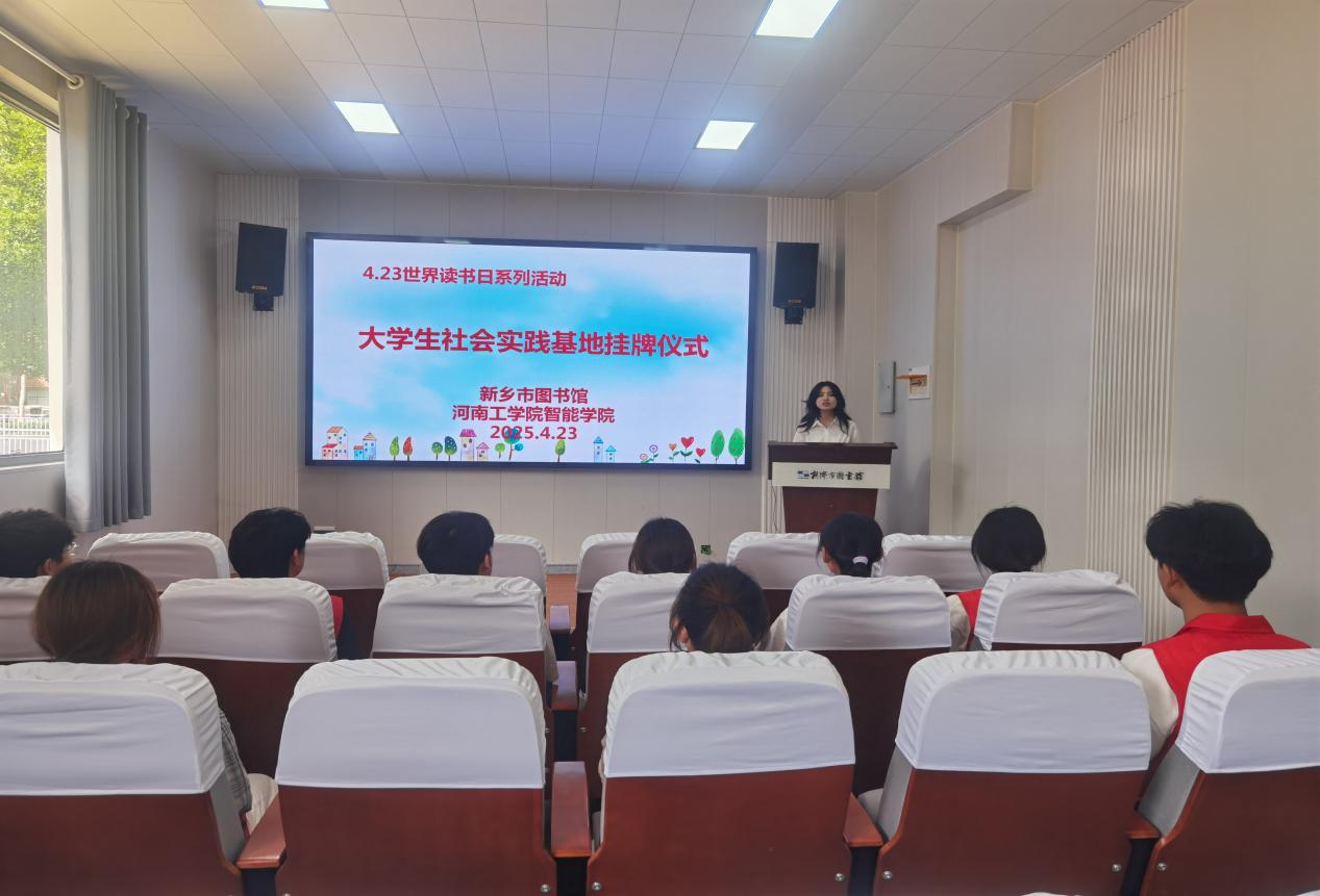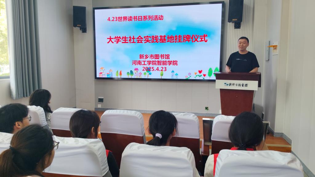 4月23日正值第28个“世界读书日”,智能工程学院团委与新乡市图书馆联合举行大学生社会实践基地挂牌仪式。此次合作旨在深化校馆合作,推动大学生社会实践与图书馆服务深度融合,服务地方文化建设。