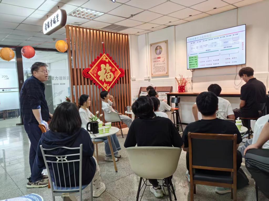 活动伊始,学院副院长杨富超与新生代表围坐畅谈,细致询问大家在课程学习、宿舍生活、校园融入等方面的感受,针对“高数听不懂”“专业方向模糊”等共性问题逐一回应。结合智能工程专业人才培养目标,他为新生明确了大一阶段的核心任务:一是筑牢基础,重点攻克《高等数学》《大学物理》等基础课程,建议通过课后答疑、学习小组等方式跟上节奏;二是建立认知,主动研读专业培养方案,通过参观实验室、接触工业机器人等设备,具象化理解专业内涵;三是培养习惯,制定每日学习计划,合理分配课堂学习、课后作业与课余时间,避免“躺平”或“盲目内卷”。