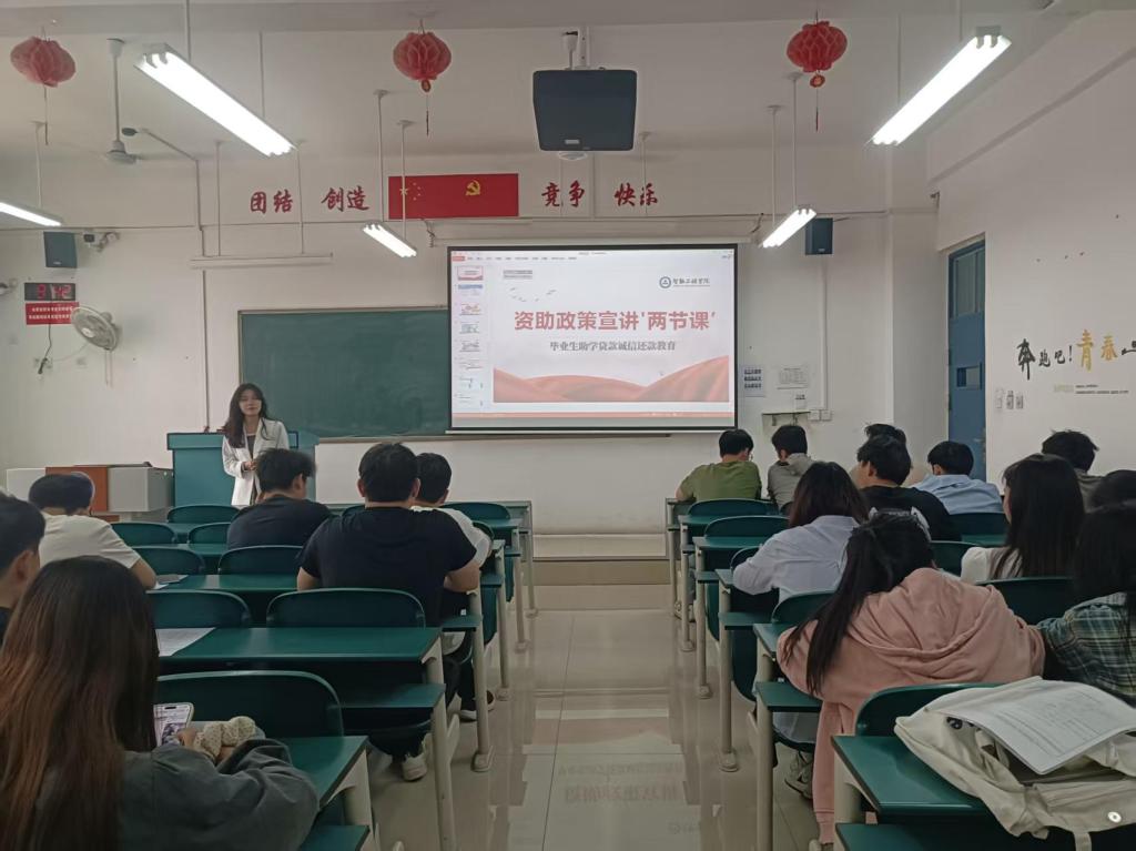 为贯彻落实国家资助政策,认真做好2025届毕业生贷款确认工作,加强毕业学生的诚信还贷和金融知识教育,指导学生按时还款、诚信还款,智能工程学院于5月13日在教七347开展资助政策“两节课”——贷款毕业生毕业确认暨诚信还贷教育宣讲会。本次宣讲会由学院辅导员万哲哲主讲,全体贷款毕业生参加。