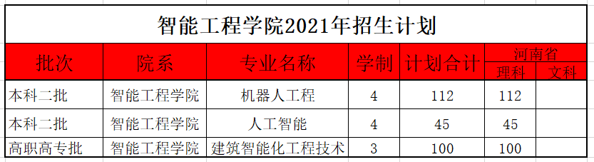 智能工程学院2021年招生计划