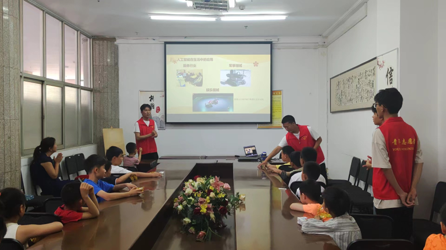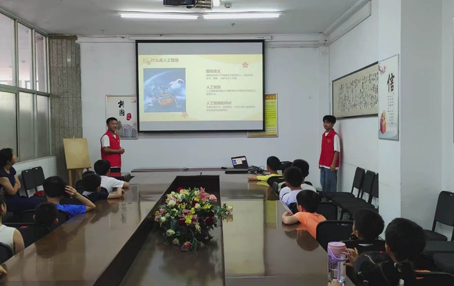团员龙彦江用生动有趣的语言向小朋友们介绍了人工智能的发展历程、基本原理、核心技术和未来趋势,通过实例展示了人工智能在医疗、教育、交通等领域的广泛应用,同时组织孩子们参与互动体验游戏,让小朋友们在丰富多彩的知识和寓教于乐的活动中感受人工智能技术的魅力和未来的发展潜力。另外还组织小朋友们讨论了人工智能对未来教育的影响,让小朋友们认识到人工智能技术在学习和生活中的重要性。