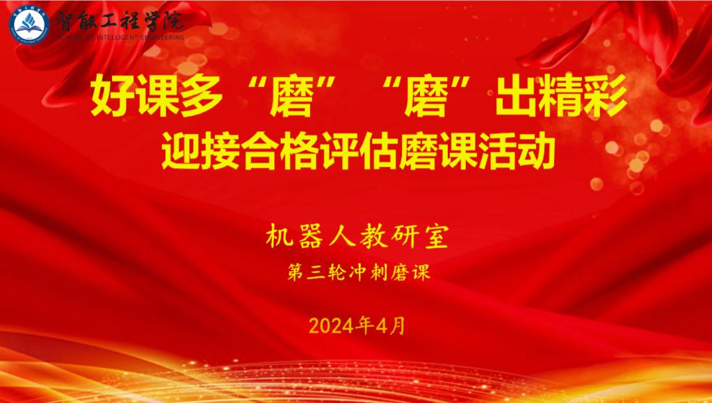 为进一步提高教师课堂教学实践能力,促进教师团队成长,迎接本科合格评估,2024年4月6日,智能工程学院机器人教研室积极组织了第三轮——“好课多‘磨’ ‘磨’出精彩”冲刺磨课活动,以必胜的决心迎接即将到来的本科合格评估。