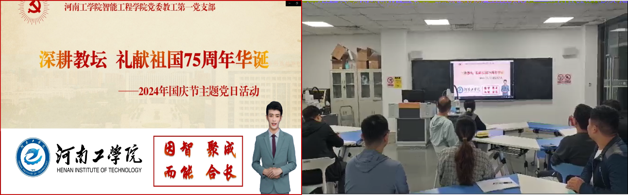 为落实立德树人根本任务,持续深化课程教学改革创新,营造良好的深耕教学氛围,机器人教研室于2024年9月30日下午开展以“深耕教坛、礼献新中国75周年华诞”为主题、以AI赋能教学为内容,开展课程建设与教学经验分享交流活动,共同探讨人工智能在教学领域的创新应用与宝贵经验。会议由AI数字人主持,全体党员参加。
