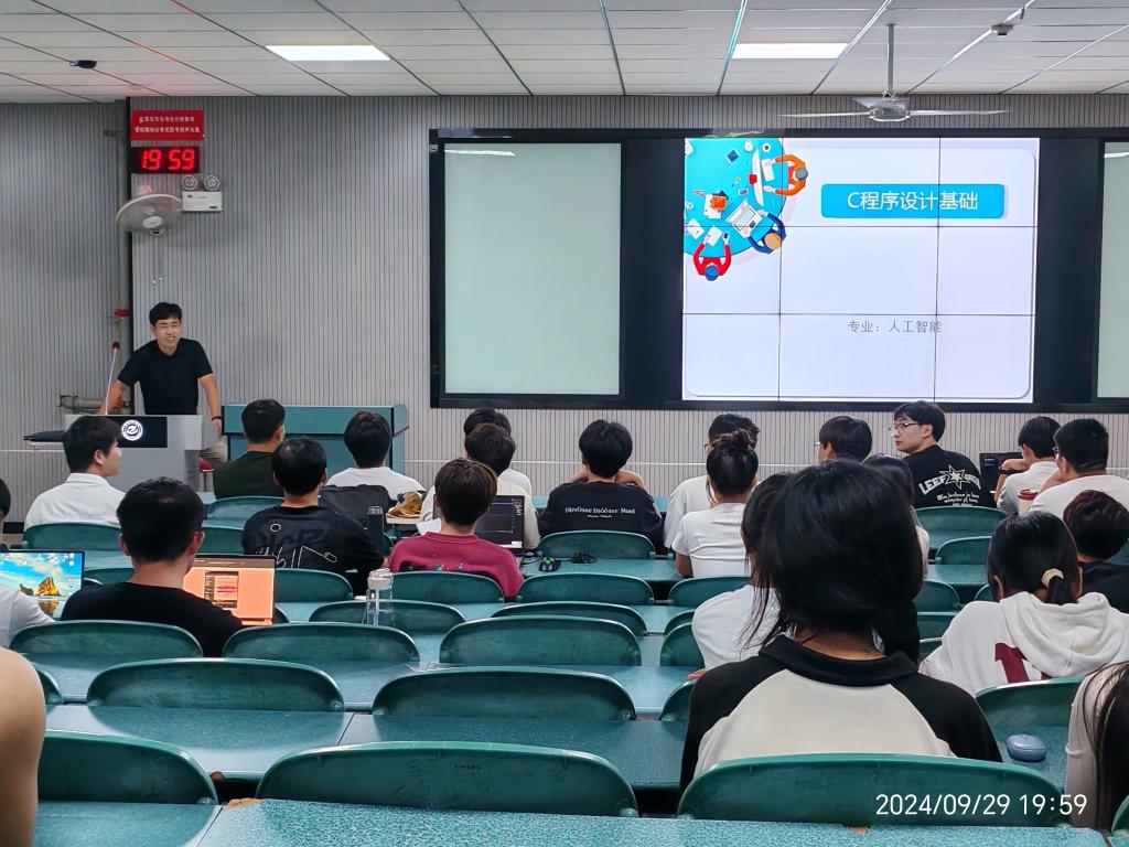 2024年9月29日晚,在河南工学院教学1号楼A204教室,一场别开生面的人工智能C语言培训活动热烈展开,此次培训由河南工学院人工智能百度飞桨领航团精心组织,特邀人工智能教研室主任刘荣升老师为大家培训,2024级人工智能专业专升本新生近100人参加培训。