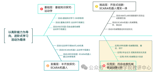 面向新工科与智能制造的新需求,机器人工程专业的《机器人工程学》课程,致力于培养有创新思维、有专业理想的高素质应用型人才。课程以进阶式学习活动为载体,构建起以高阶能力为导向的研究性教学模式。通过激发学生的探究兴趣,实现“教师教学引导”与“学生自主探究”的协同互动,成为驱动学生高阶思维与实践能力持续攀升的强劲双引擎。