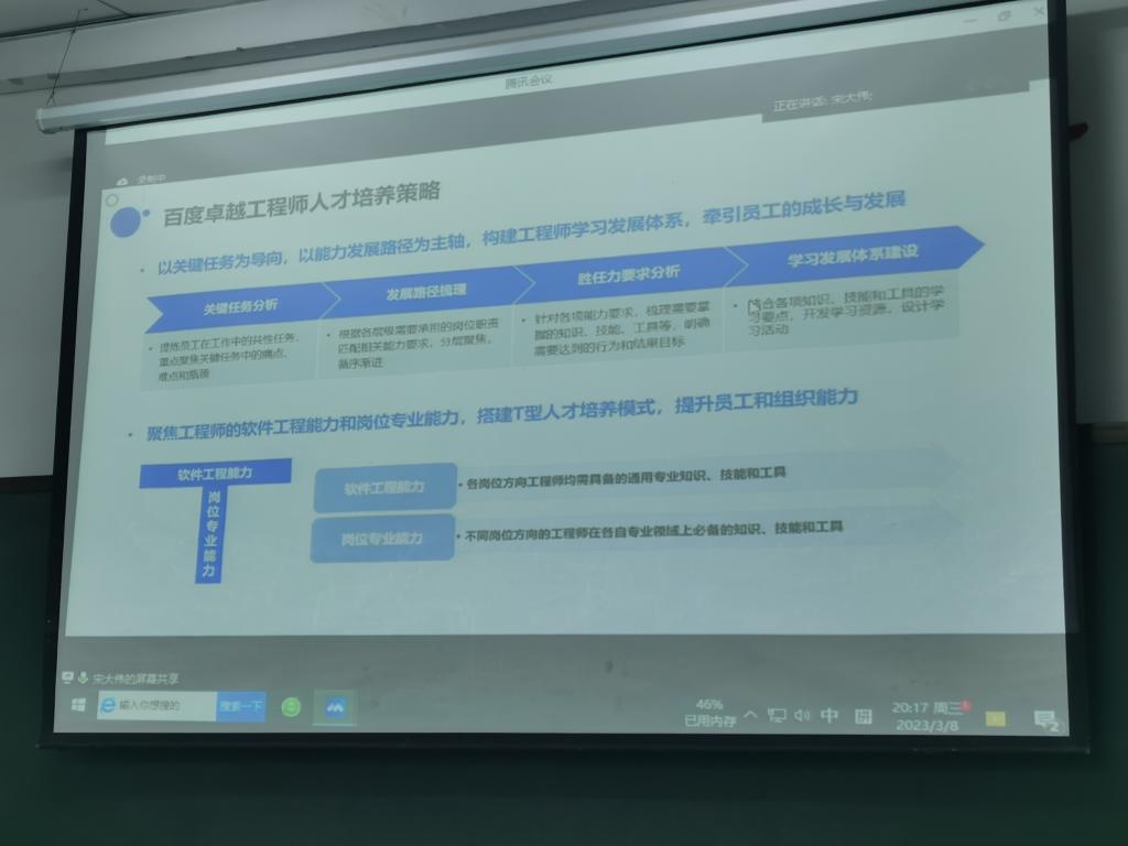 3月8日,百度联合17所河南省教育厅签约合作高校在线上开展飞桨认知实习营 河南站(人工智能开学第一课)活动,我院组织人工智能专业21级、22级,机器人工程21级、22级学生以及部分专业教师在教1C408集中观看。