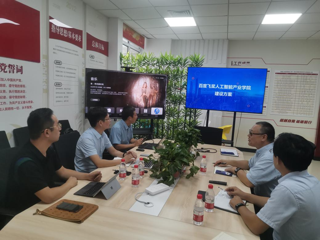 为深入贯彻落实《河南省新一代人工智能产业发展行动方案》等决策部署,落实落细本科高校与百度共建人工智能产业学院的各项工作任务,2022年8月31日下午,智能工程学院杜院长、杨院长与北京百度网讯科技有限公司在创新楼201召开共建人工智能现代产业学院推进会,对共建方案共同商讨。