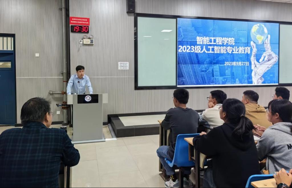 为确保新生能够更好地融入大学生活、了解专业课程和规划未来,2023年9月27日智能工程学院人工智能教研室组织多名骨干教师为23级人工智能专业开展了一场生动、丰富的专业教育。