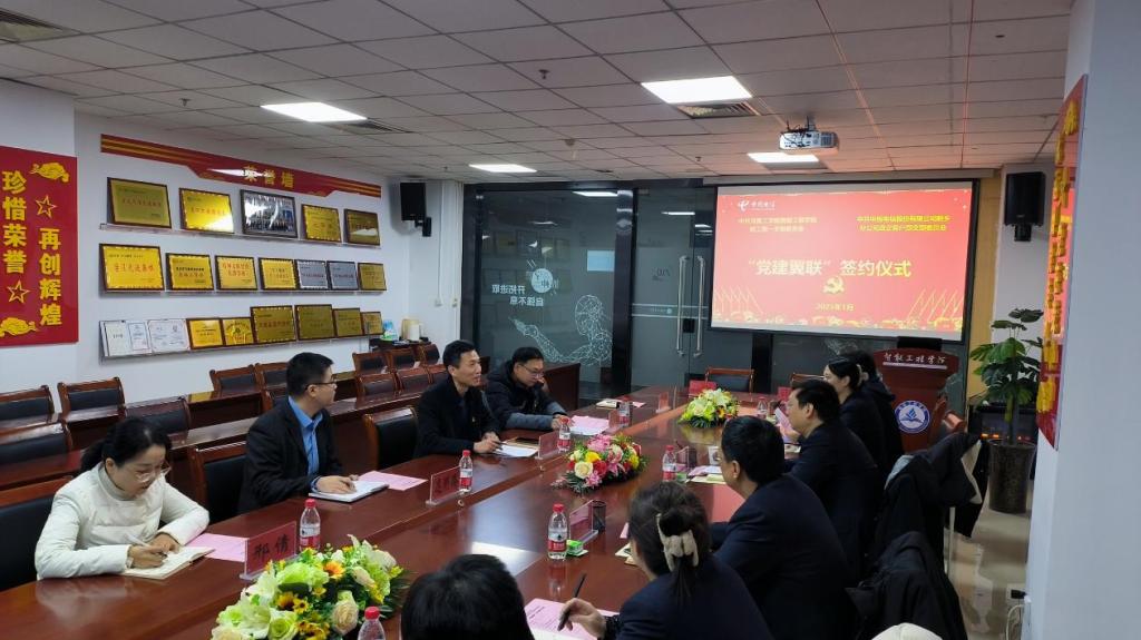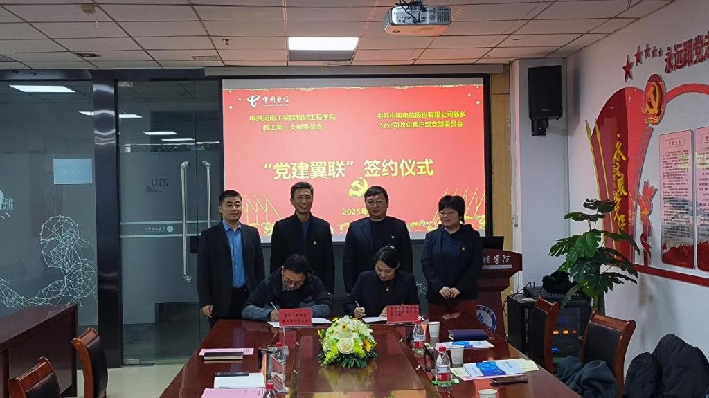 2025年1月2日上午9点,河南工学院智能工程学院教工第一党支部与中国电信新乡分公司政企客户部党支部在创新楼210会议室举行了“党建翼联”合作签约仪式。此次合作旨在通过党建引领,促进校企双方在资源共享、优势互补等方面实现更深层次的合作,推动双方在教育智能化和科技创新等领域的发展。