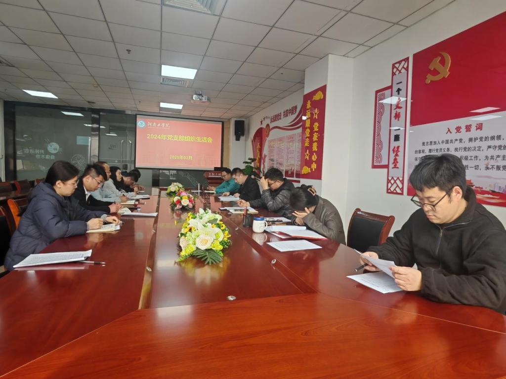 2025年3月13日,智能工程学院教工第一党支部在创新楼210办公室召开了2024年度组织生活会,党支部所有党员参加。本次组织生活会以“深入学习贯彻习近平新时代中国特色社会主义思想和党的二十届三中全会精神,巩固深化党纪学习教育成果,综合发挥党的纪律教育约束、保障激励作用,团结带领广大师生党员为进一步全面深化改革、推进中国式现代化提供坚强纪律保证”为主题,推动支部工作高质量发展。